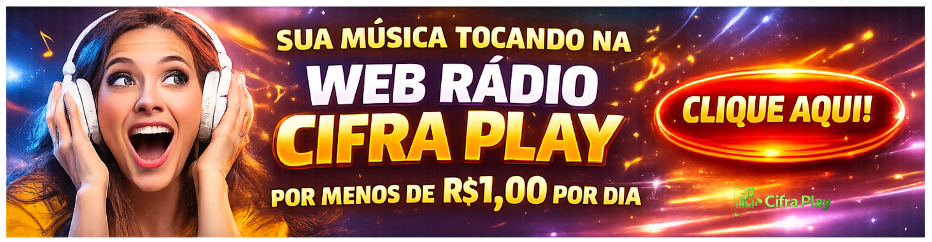Se você tem uma música guardada há anos e ainda não produziu, chegou a sua oportunidade. Produzimos sua música com tecnologia de ponta, qualidade profissional e preço justo. Além disso, sua música ganha divulgação na Web Rádio Cifra Play e nas nossas redes sociais.